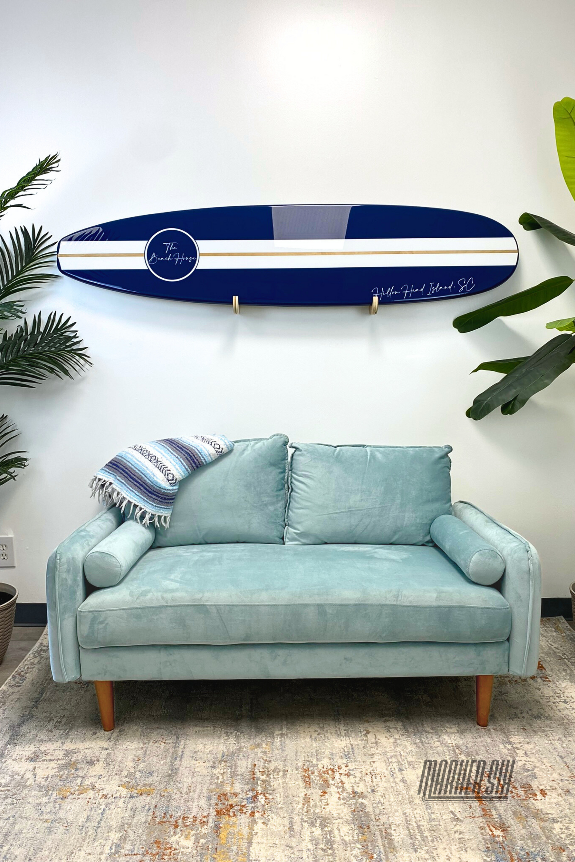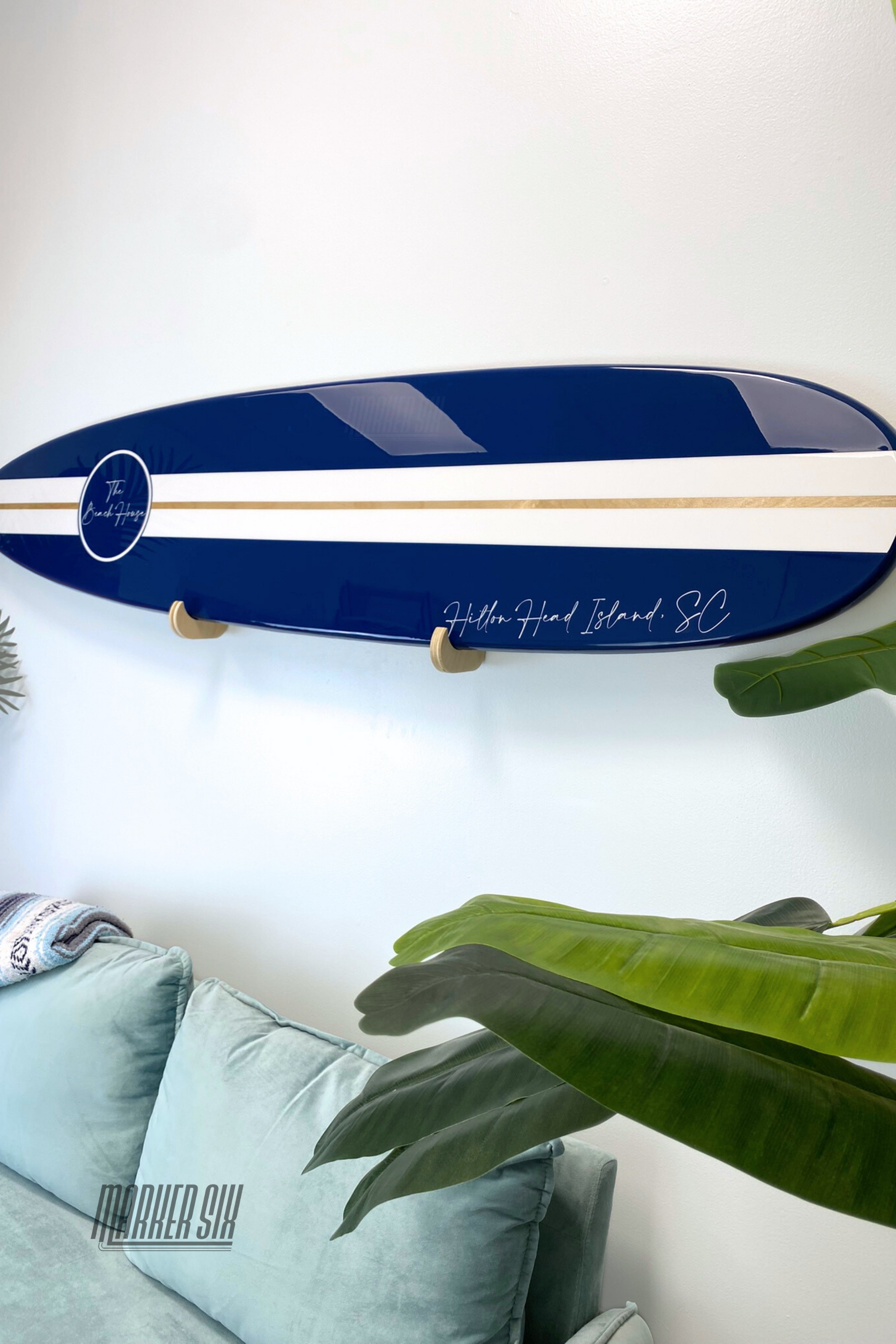 The Hilton Head Striped Surfboard Wall Art is a sleek and modern high gloss piece of surfboard decor. Hang it vertically or horizontally in your home, just let us know which you prefer!