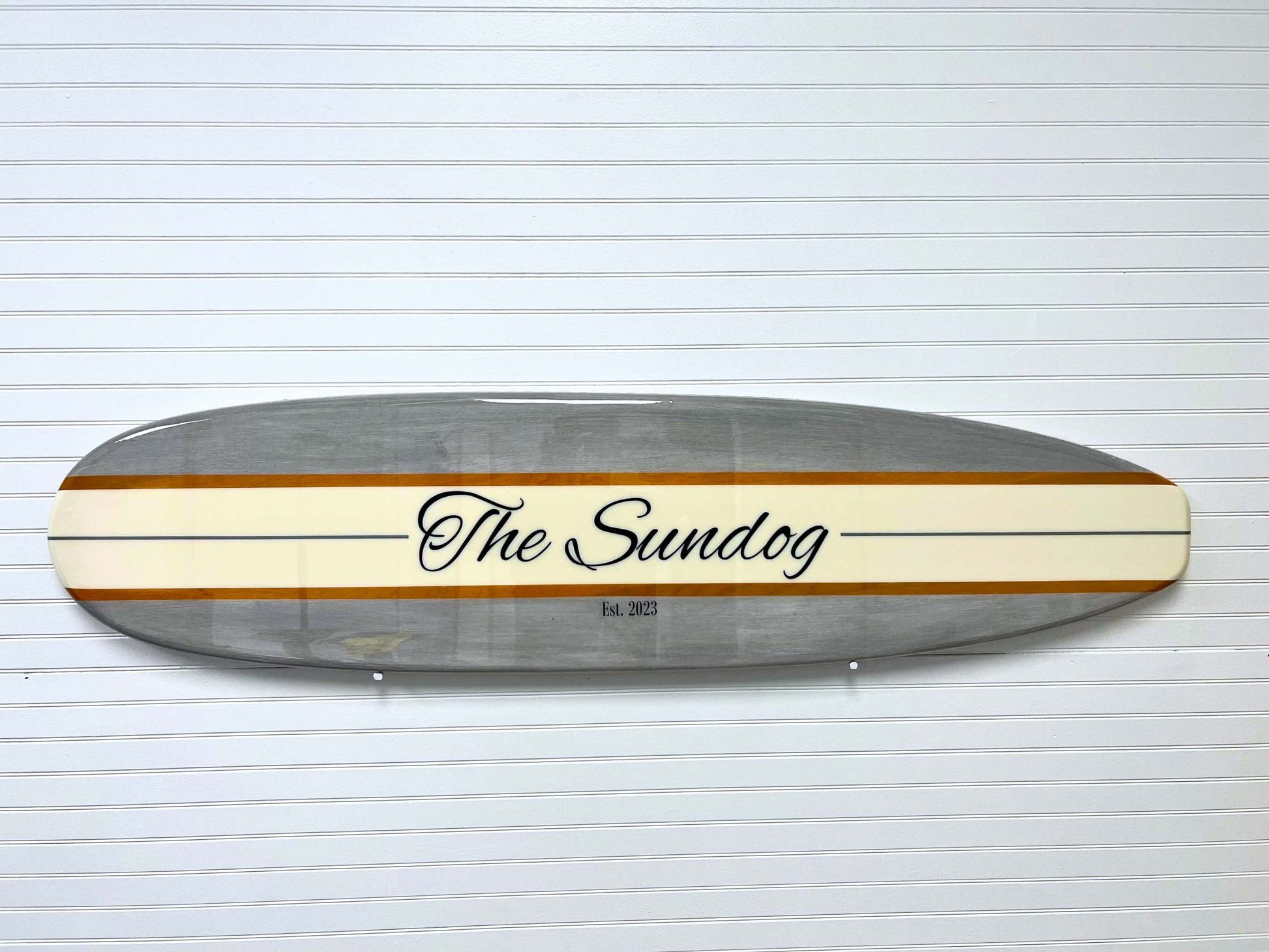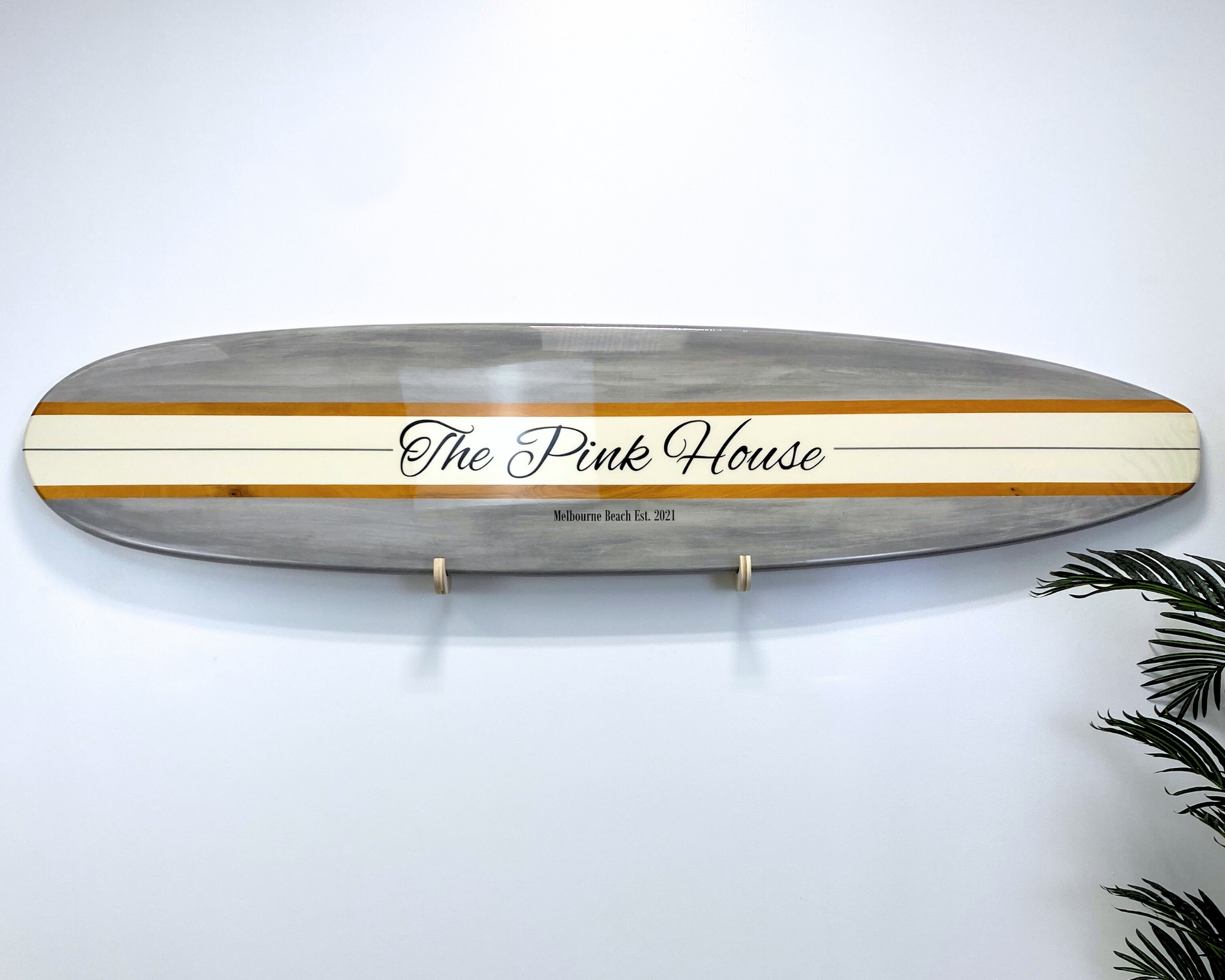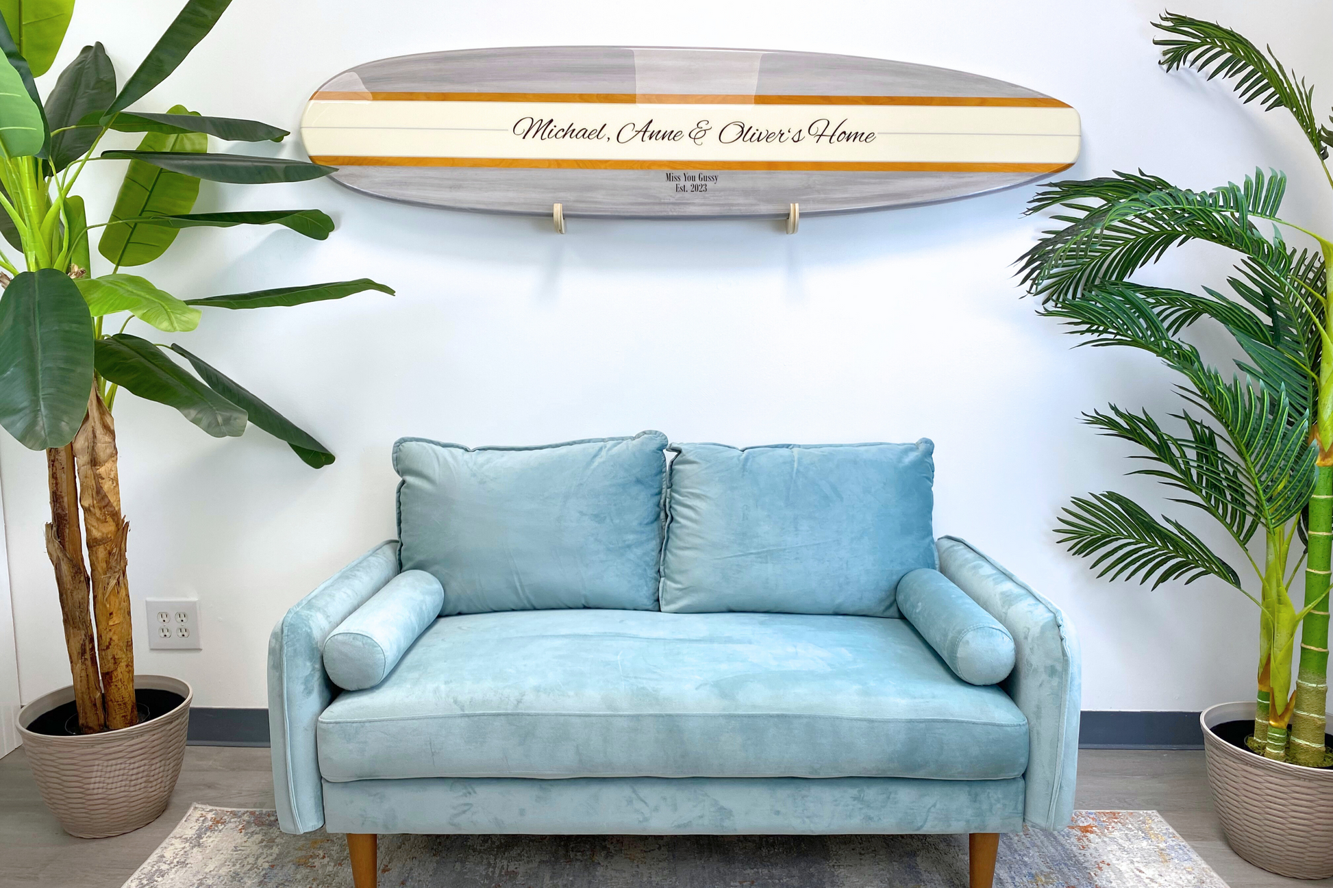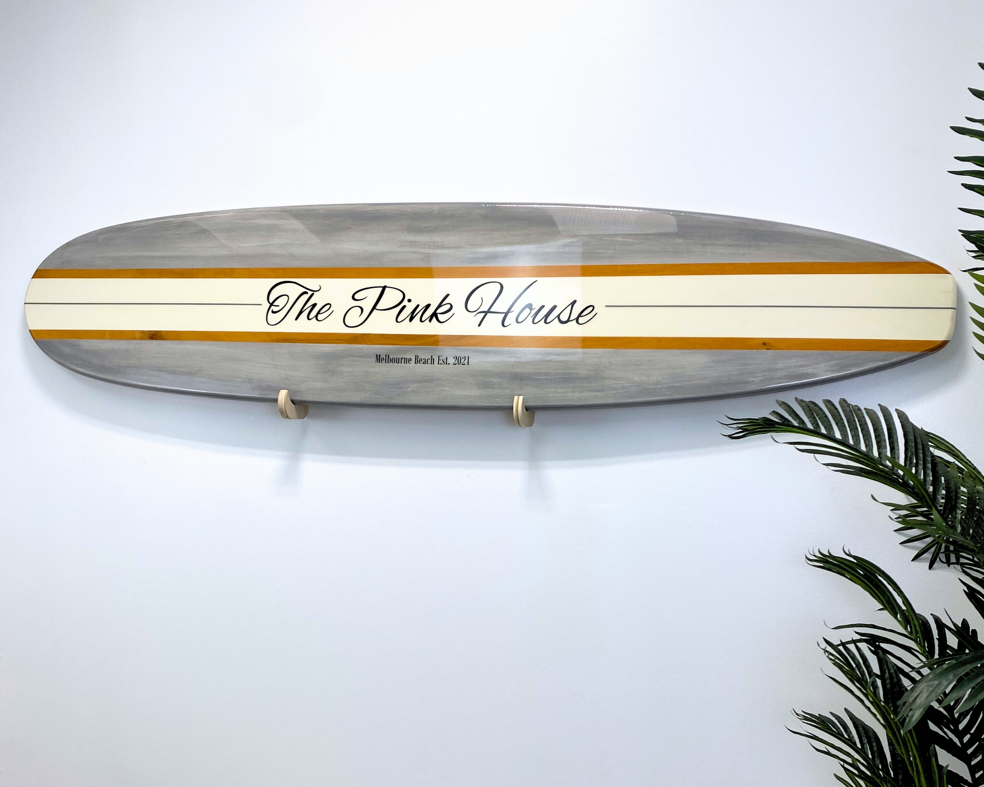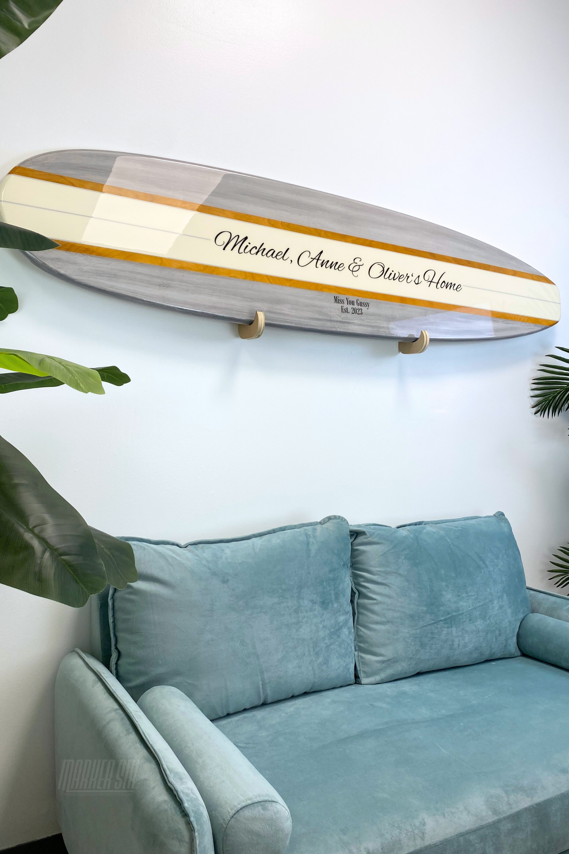 The Classic surfboard is the perfect wall art to finish any coastal themed space and can be customized to your specific needs.